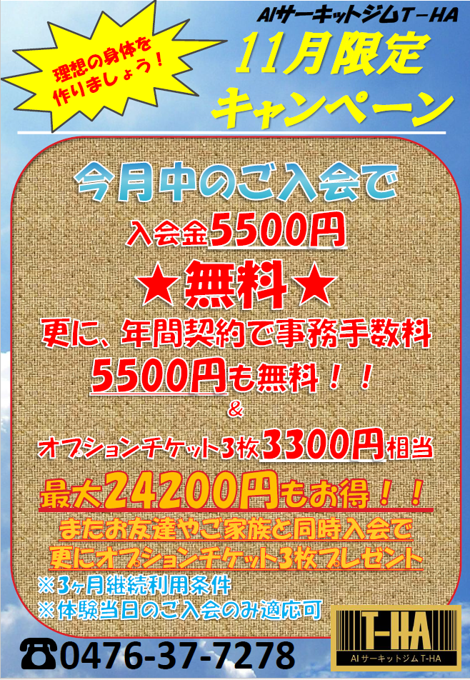 AIサーキットジムT-HAにはキッズルームを併設しています。お子様が遊んでいる間に心置きなくトレーニングが出来ます。体験時、お子様がいらっしゃる時はお菓子をプレゼント!